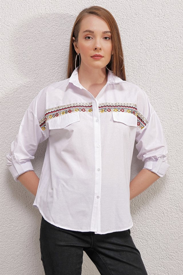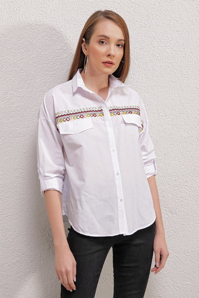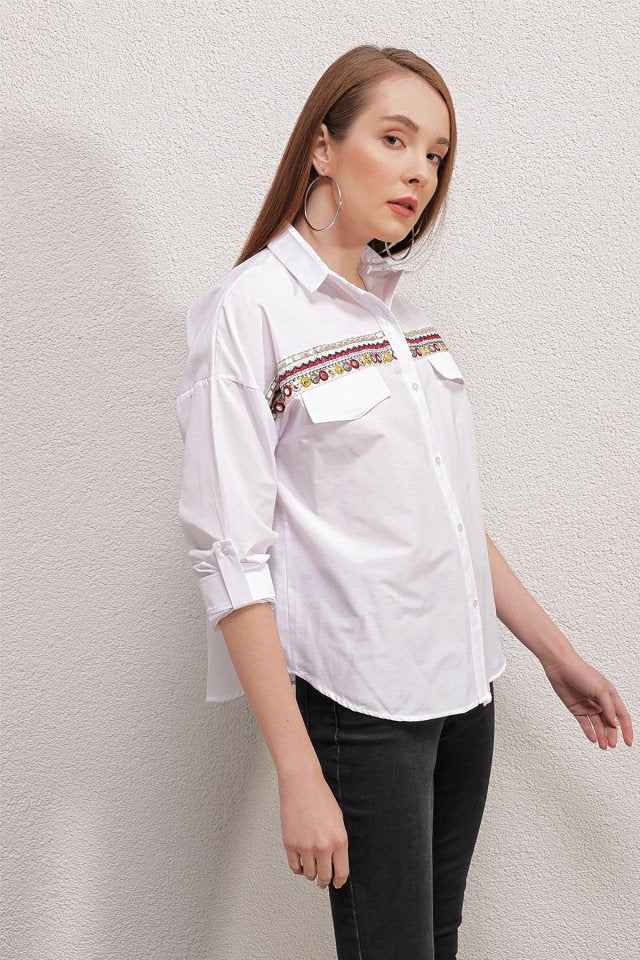 20147 Nakışlı Gömlek - Beyaz