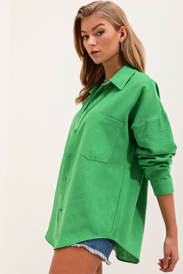 20153 Tek Cepli Oversize Gömlek - Yeşil
