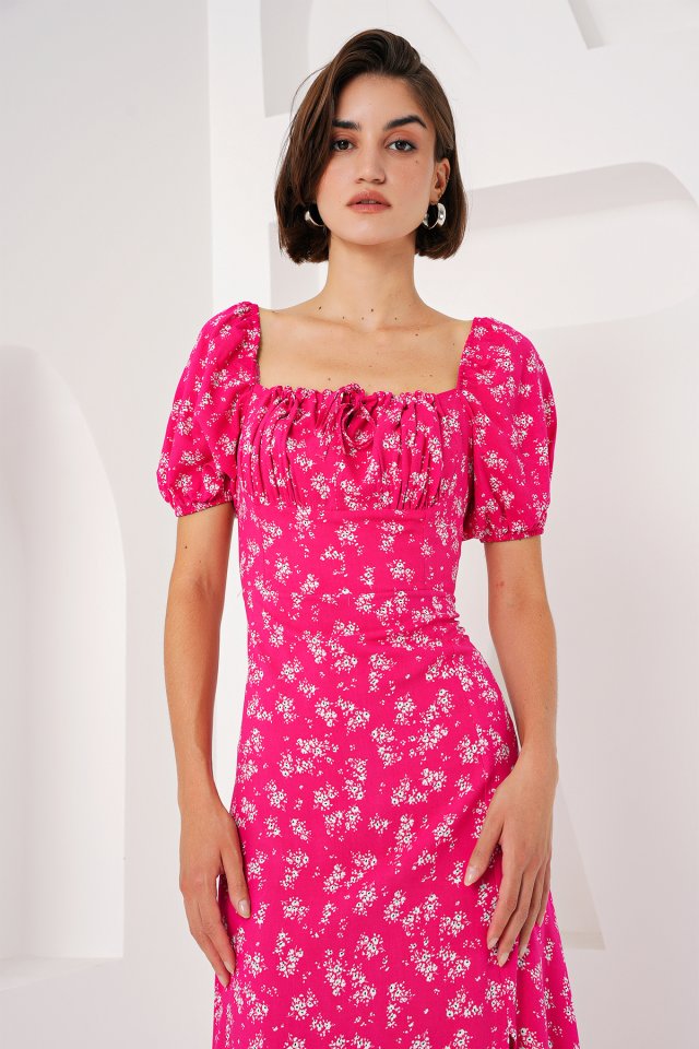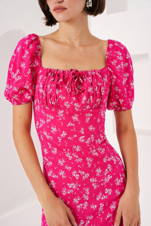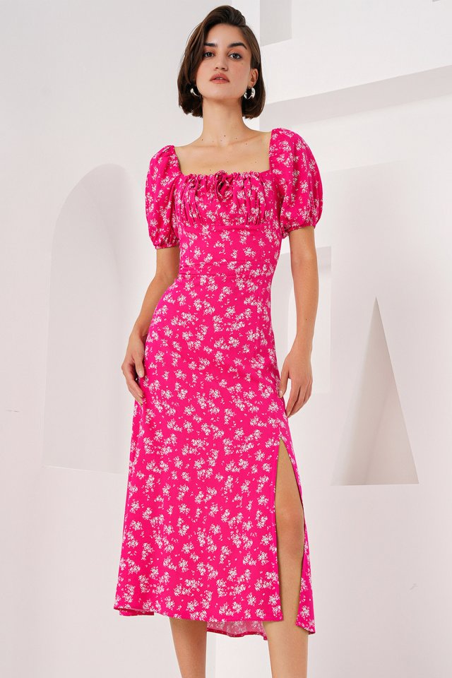 2387 Yırtmaç Detaylı Elbise - Fuşya