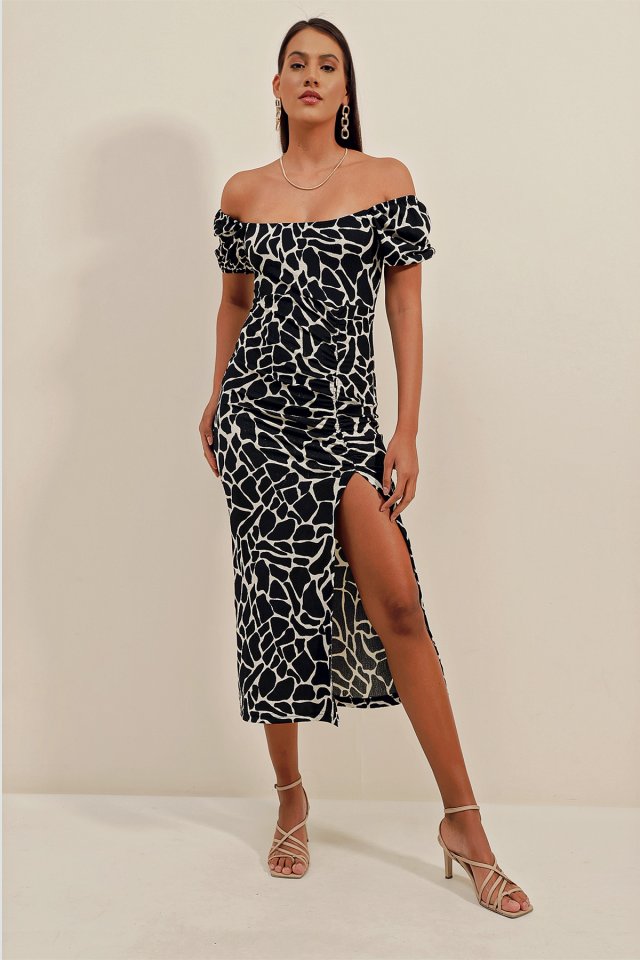 2396 Yırtmaçlı Yazlık Örme Elbise - A.Siyah