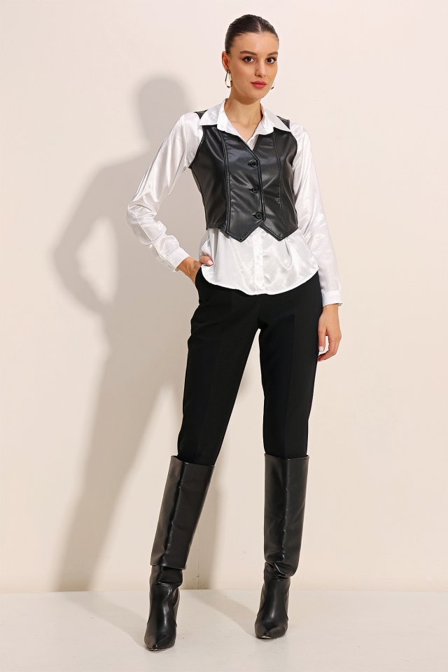 6790 Suni Deri Yelek - Siyah