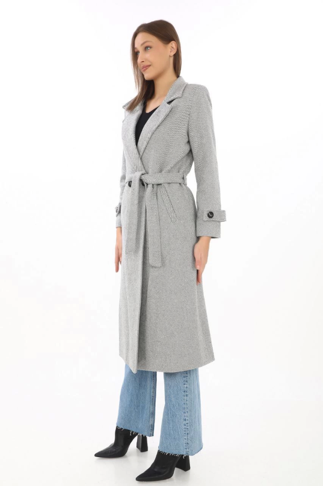 Astarlı Balık Sırtı Kaşmir Kaşe Kaban - Gri