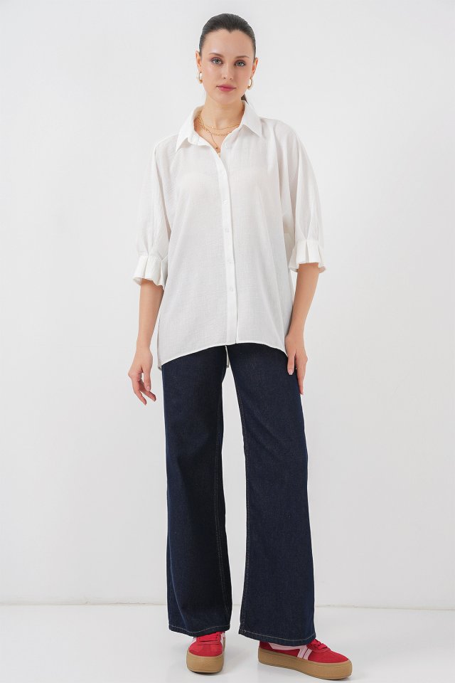 Bağlama Detaylı Ayrobin Gömlek 20290 - Beyaz