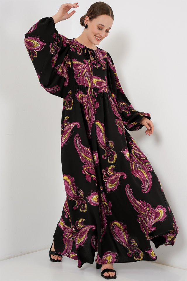 Balon Kol Uzun Tesettür Elbise 2464 - Y.Fuşya