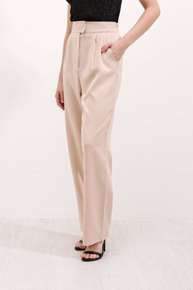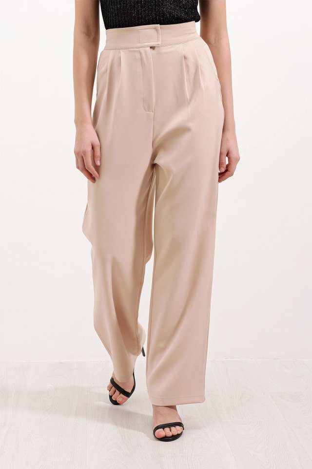 Bej Yüksek Bel Kumaş Pantolon 6612