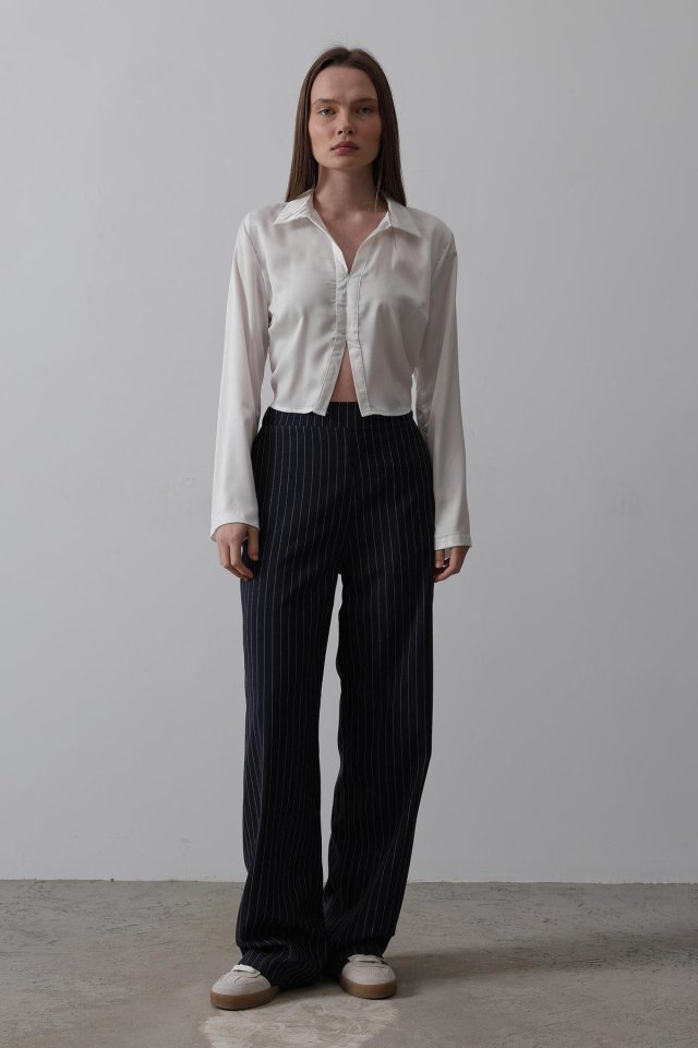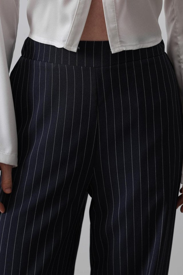 Beli Yarım Lastikli Palazzo Pantolon - Lacivert-Beyaz