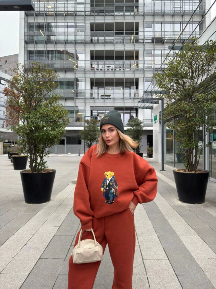 Bisiklet Yaka Üç İplik Sweat Takım - Kiremit