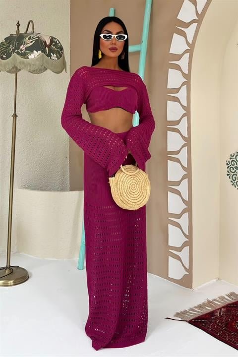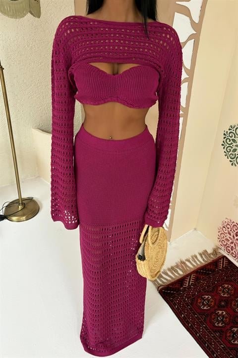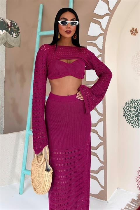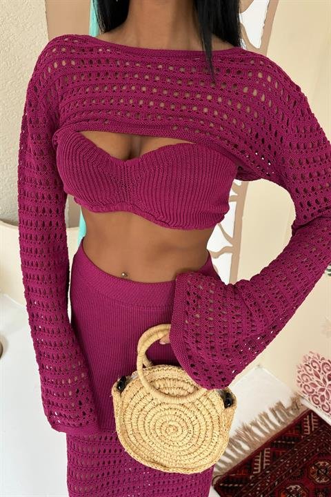Büstiyer Ve Bolerolu Ajur Üçlü Takım 10087