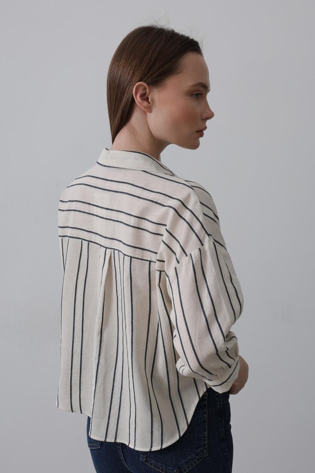 Çizgili Kısa Gömlek - Bej-Lacivert