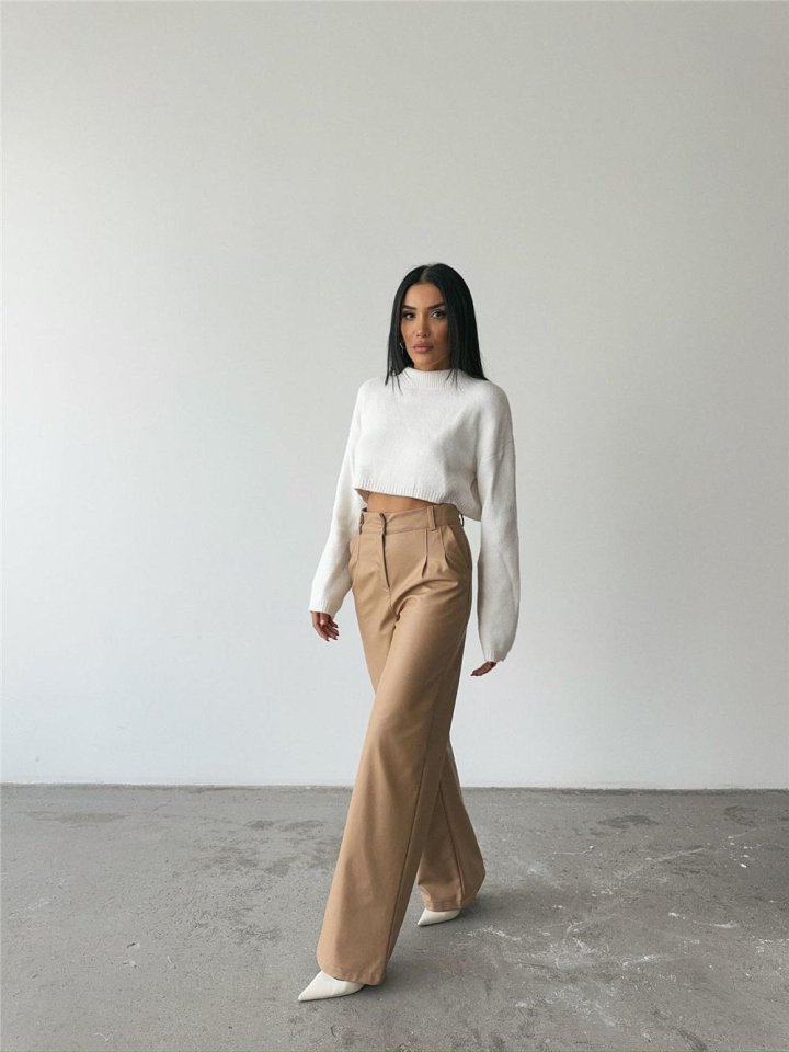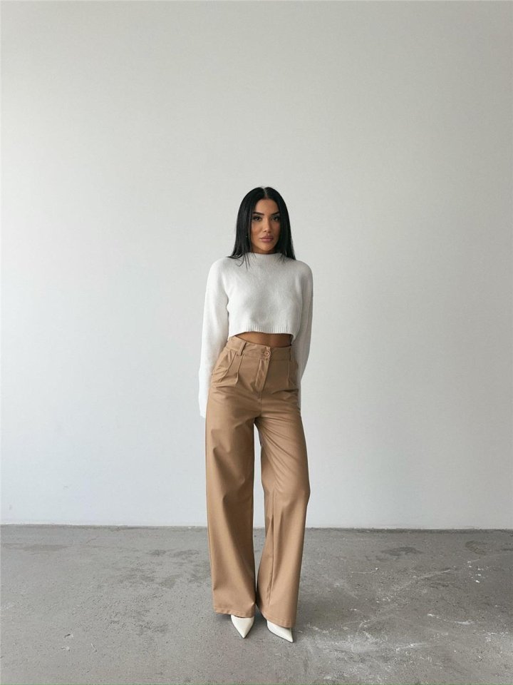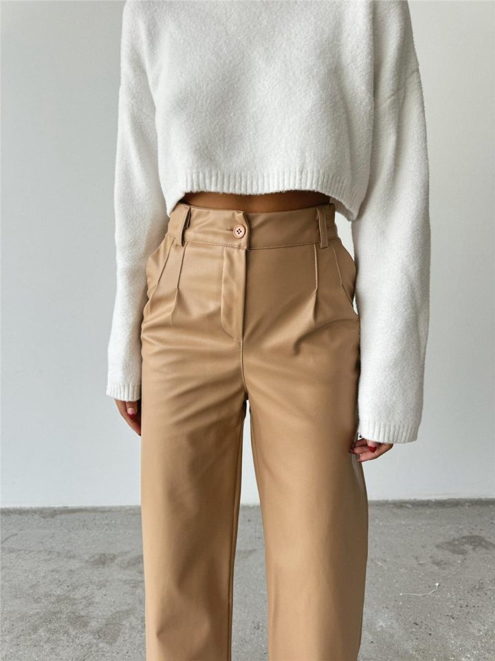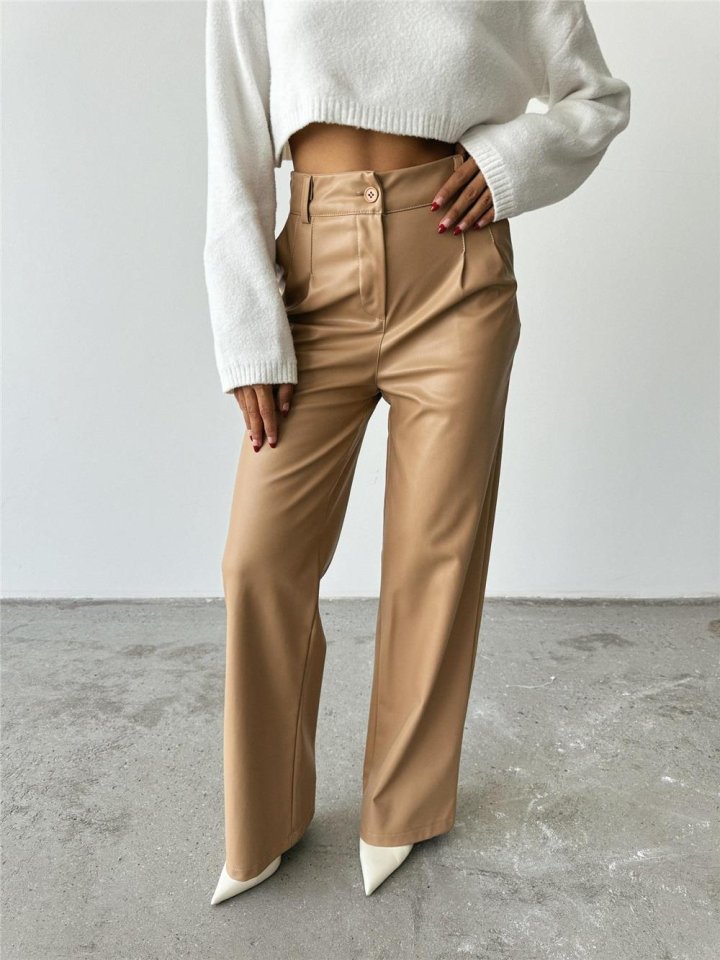 DERİ PALAZZO PANTOLON BORU PAÇA - Bej