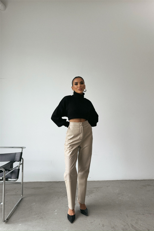 DERİ PANTOLON DİZ PARÇALI - Taş