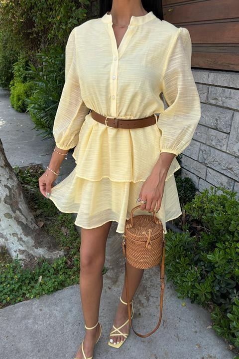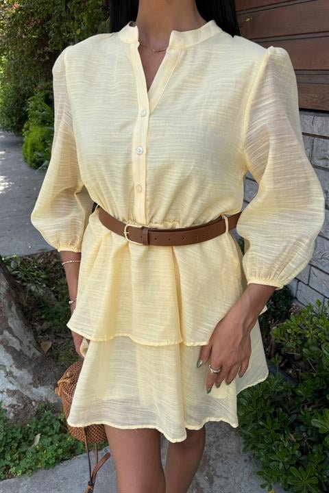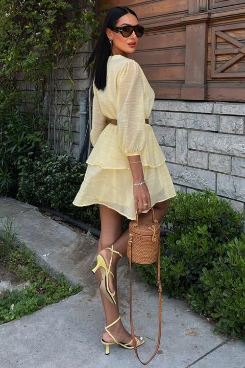Deri Kemerli Fırfırlı Elbise 2901