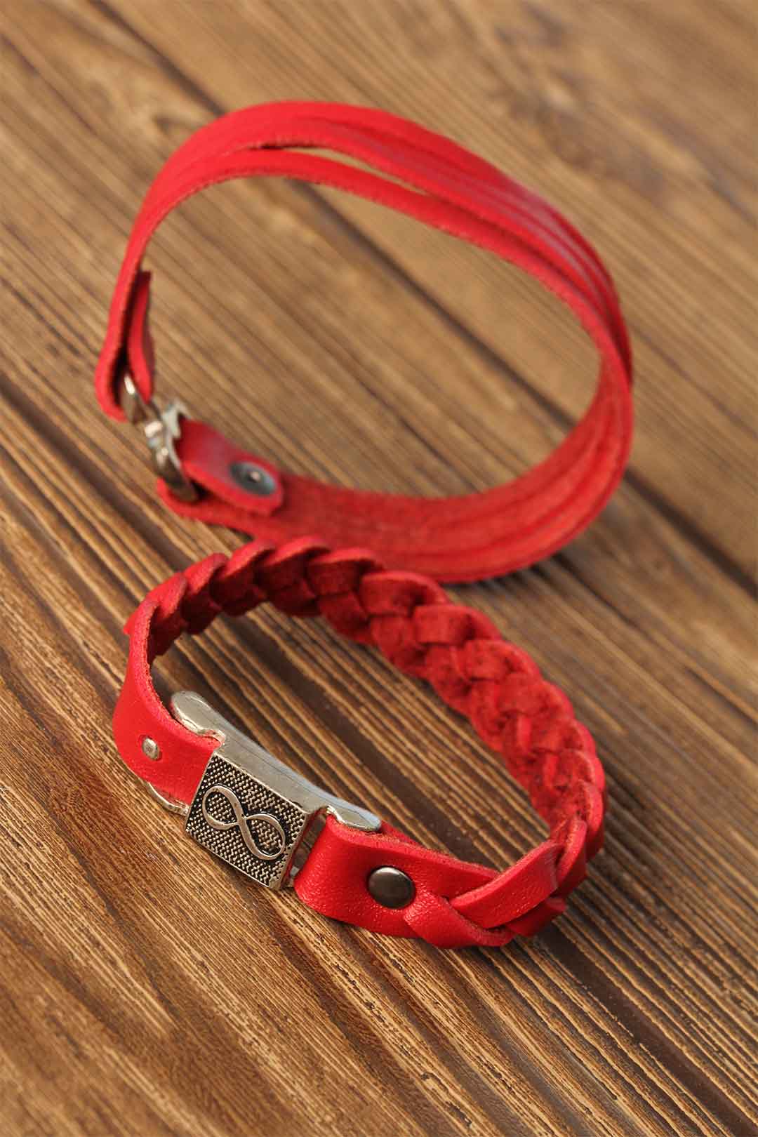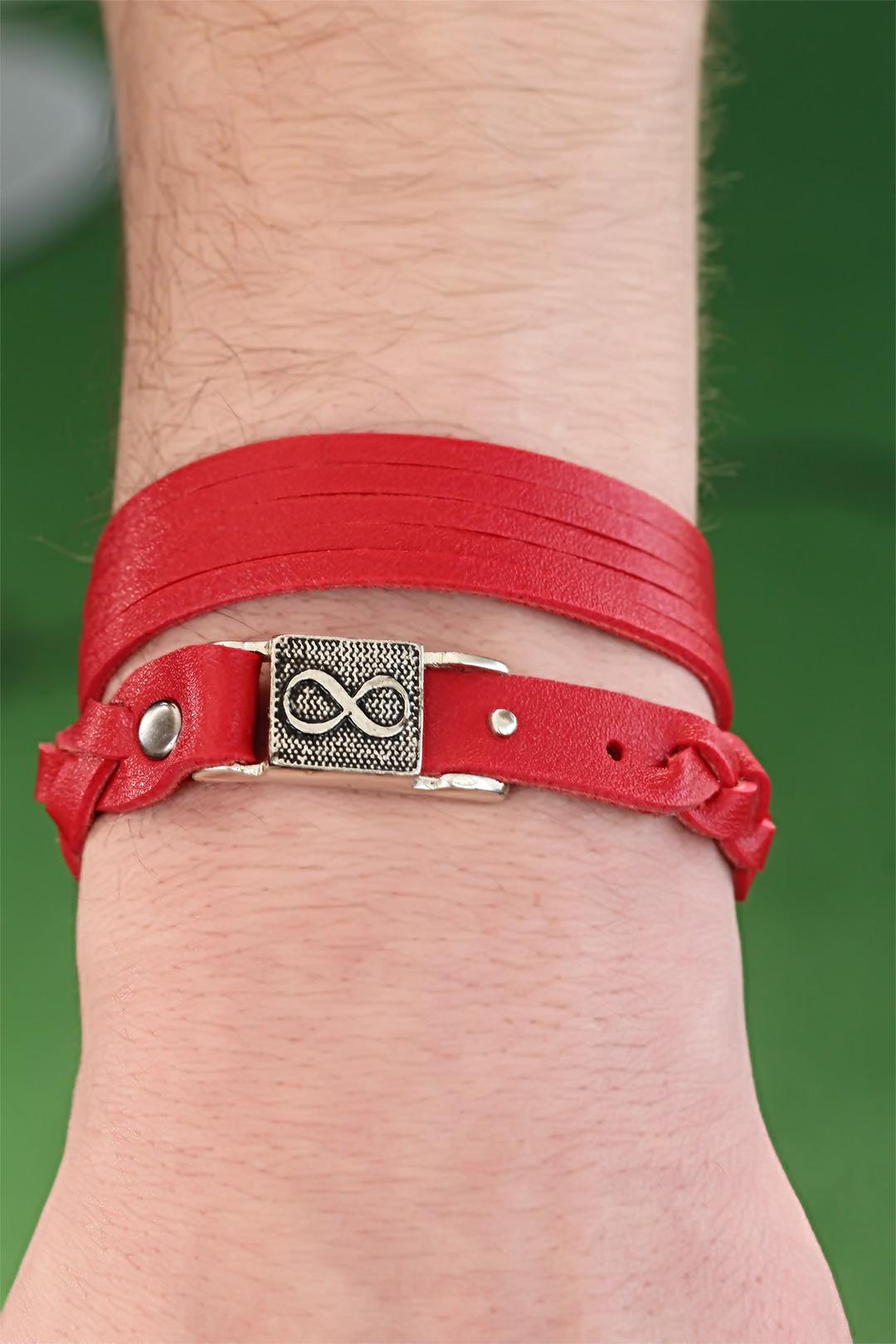Desenli Metal Aksesuarlı Kırmızı Renk Deri Erkek Bileklik Kombin