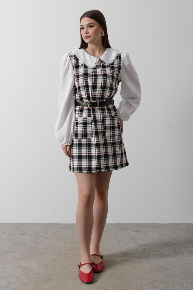 Ekoseli Gömlek Detaylı Elbise - Siyah