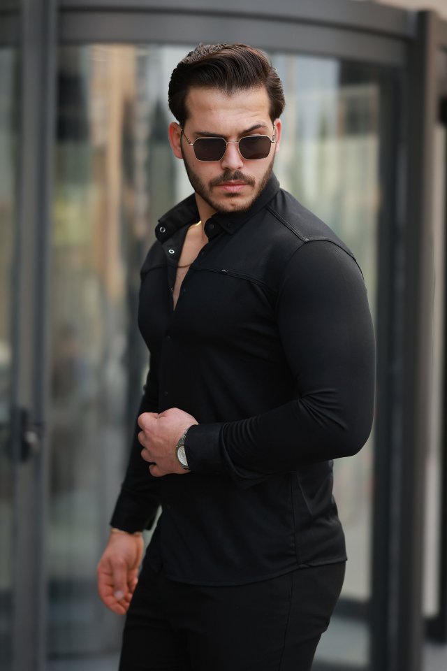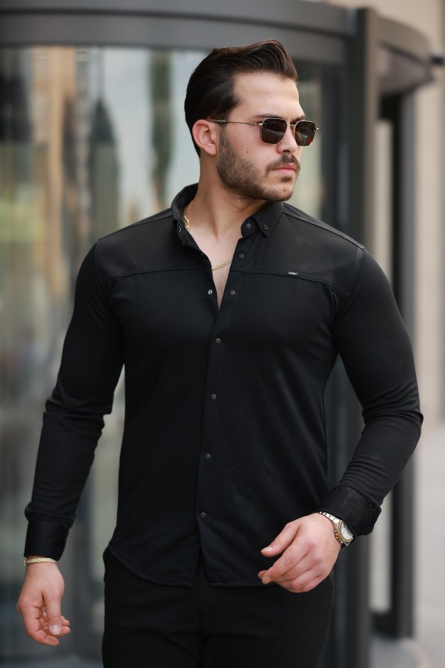 Erkek çıtçıt Düğmeli Dikiş Detaylı Uzun Kollu Gömlek
