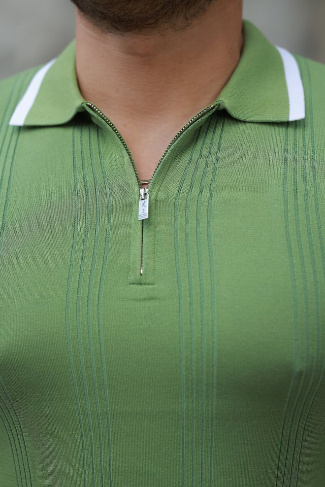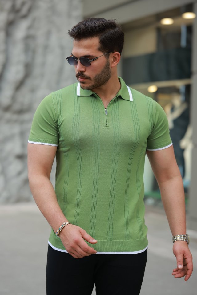 Erkek Fermuar Yakalı Kısa Kollu Tişört