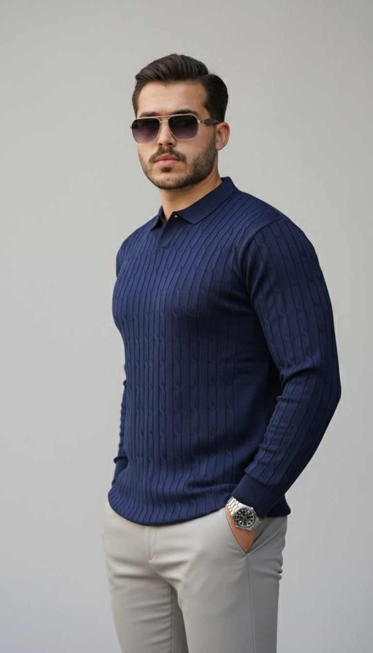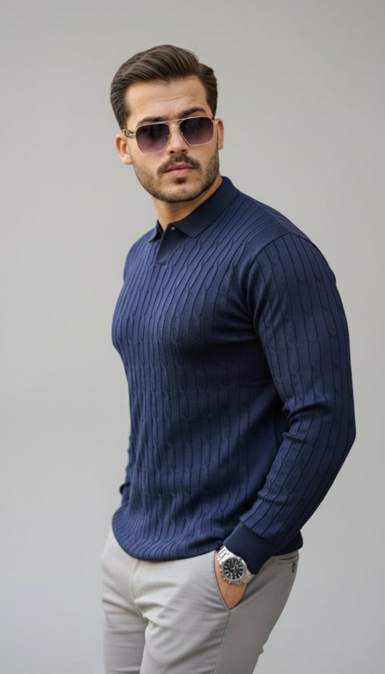 Erkek Saç örgü Desenli Uzun Kollu Triko