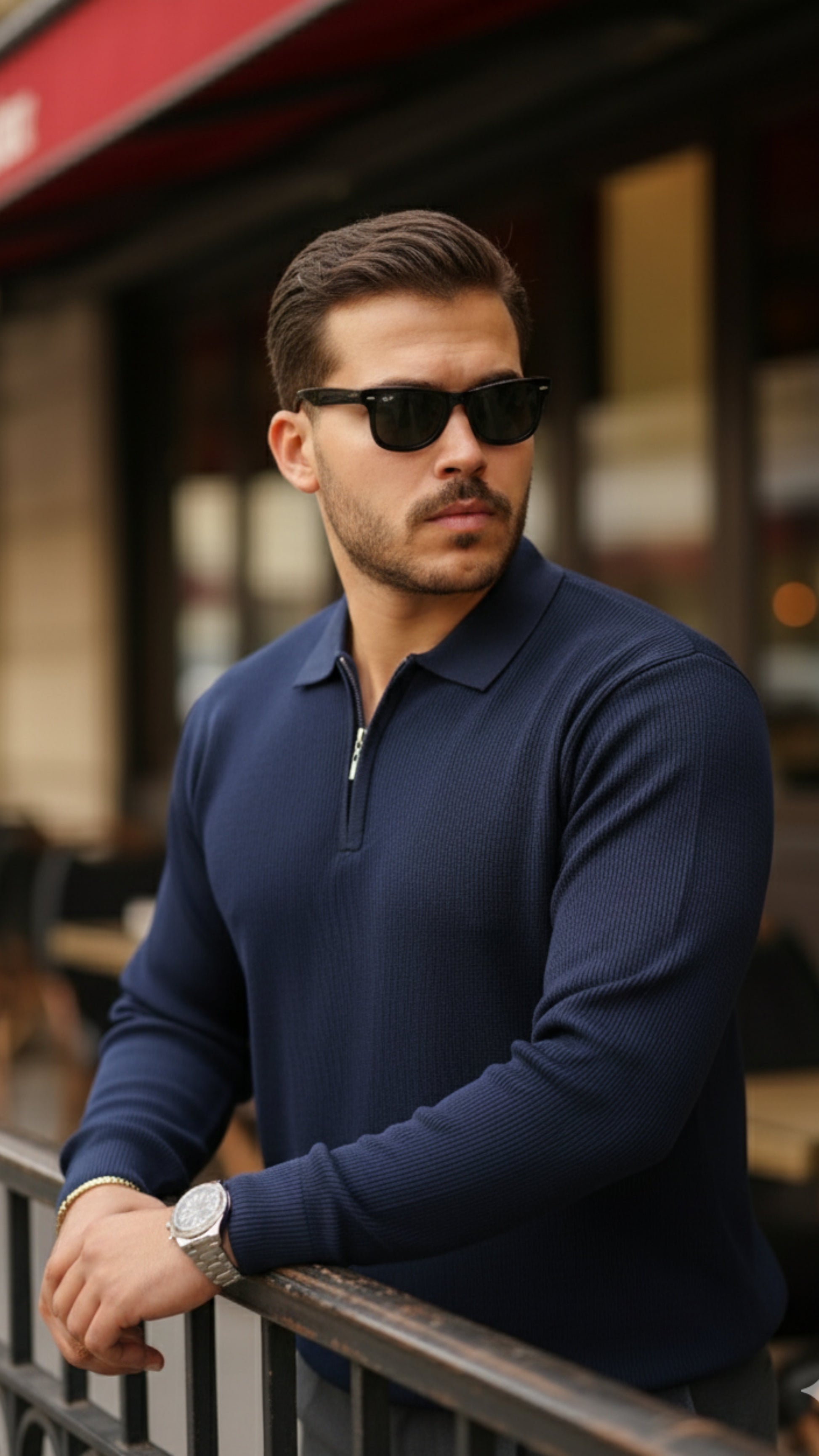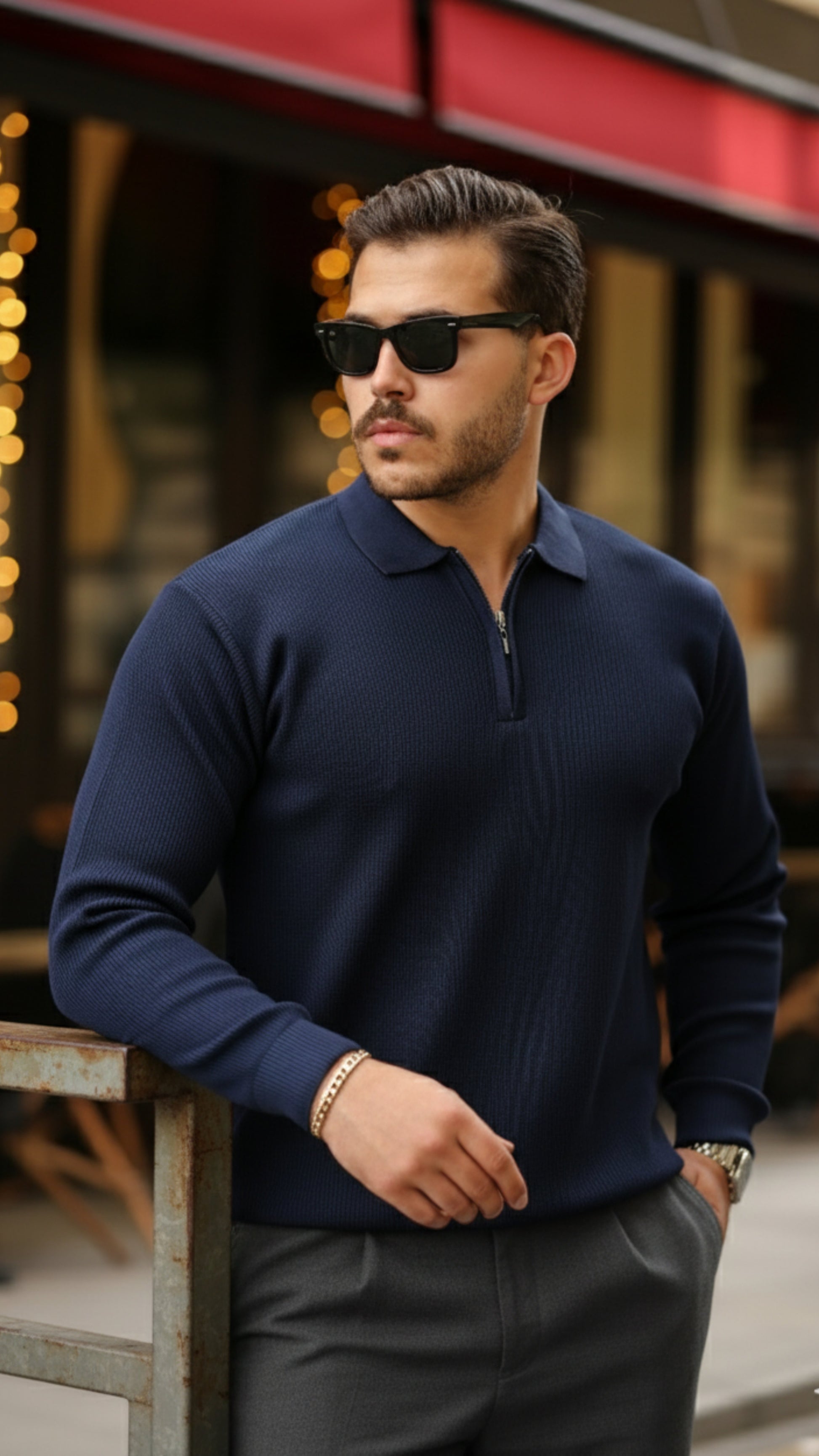 Erkek Selanik örme Yakalı Uzun Kollu Triko