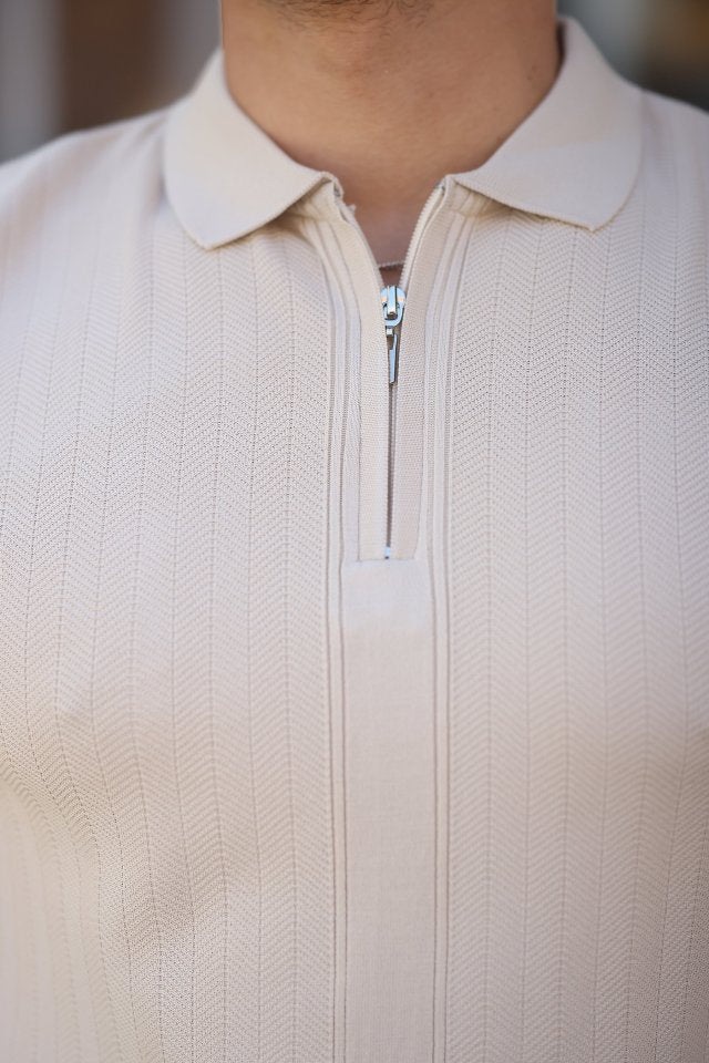 Erkek Yakası Fermuarlı Kısa Kollu T-shirt