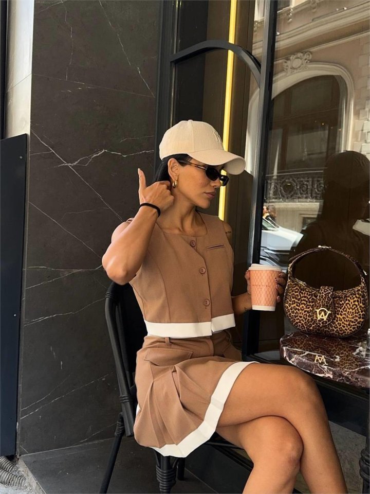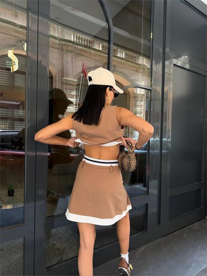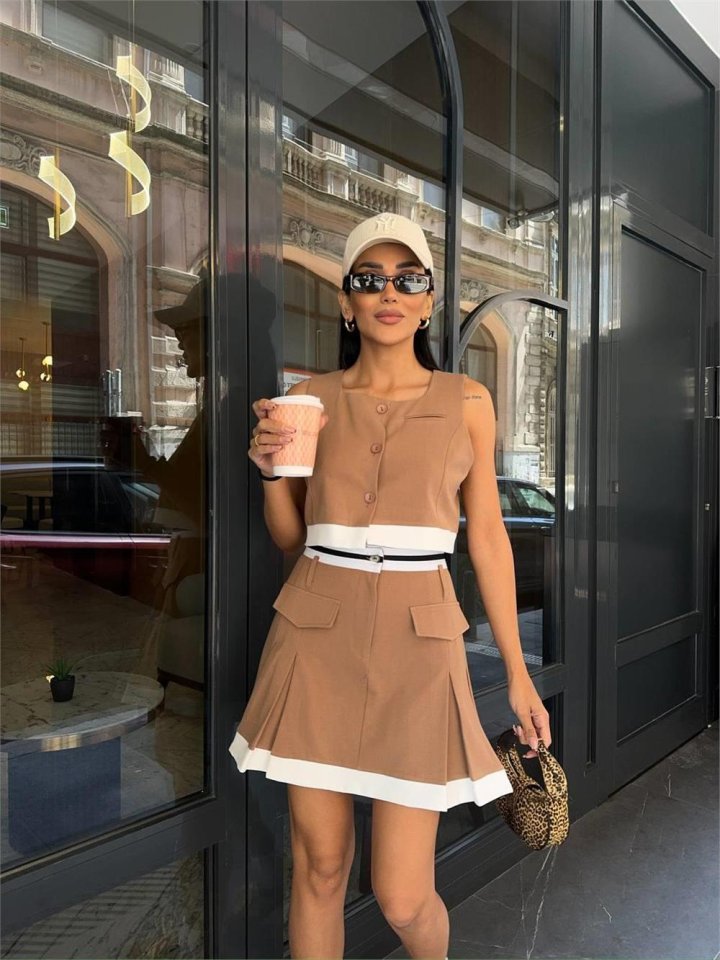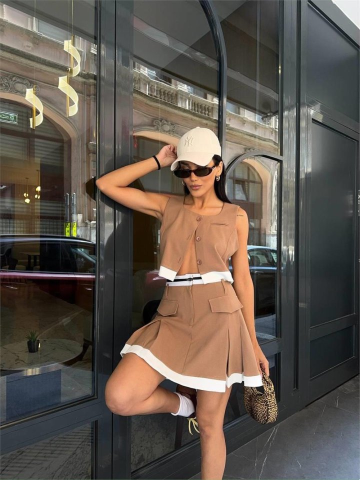 ETEKUCU ŞERİTLİ YELEK - TENİS ETEK TAKIM - Bej