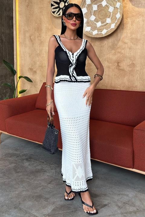 Fırfır Detaylı Uzun Etekli Triko Takım 10115