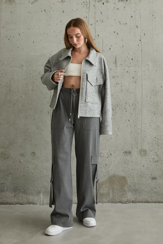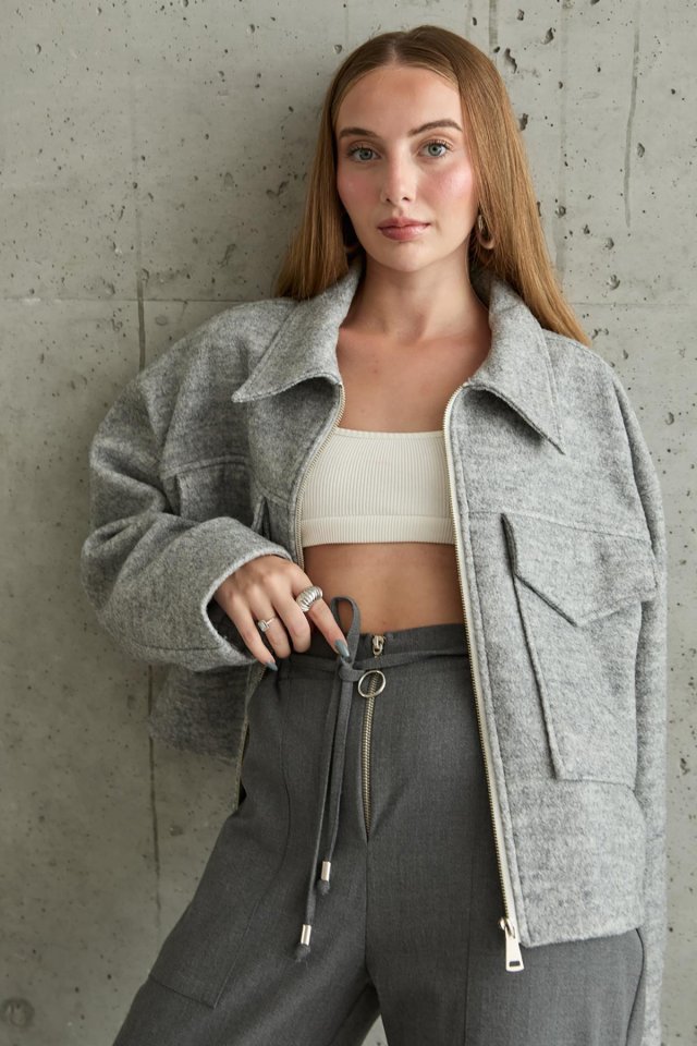 Gri Cebi Kapaklı Kaşe Ceket