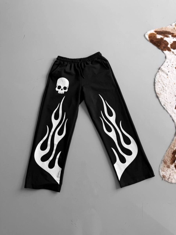 İki İplik Baskılı Kumaş Baggy Alt Esofman - Siyah