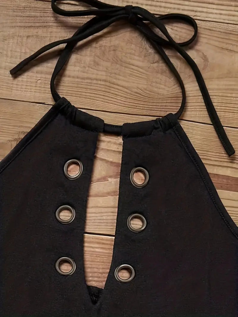 Kadın Askılı Kuş Gözü Ve Dekolte Detay Boyundan Bağlamalı Viskon Bluz