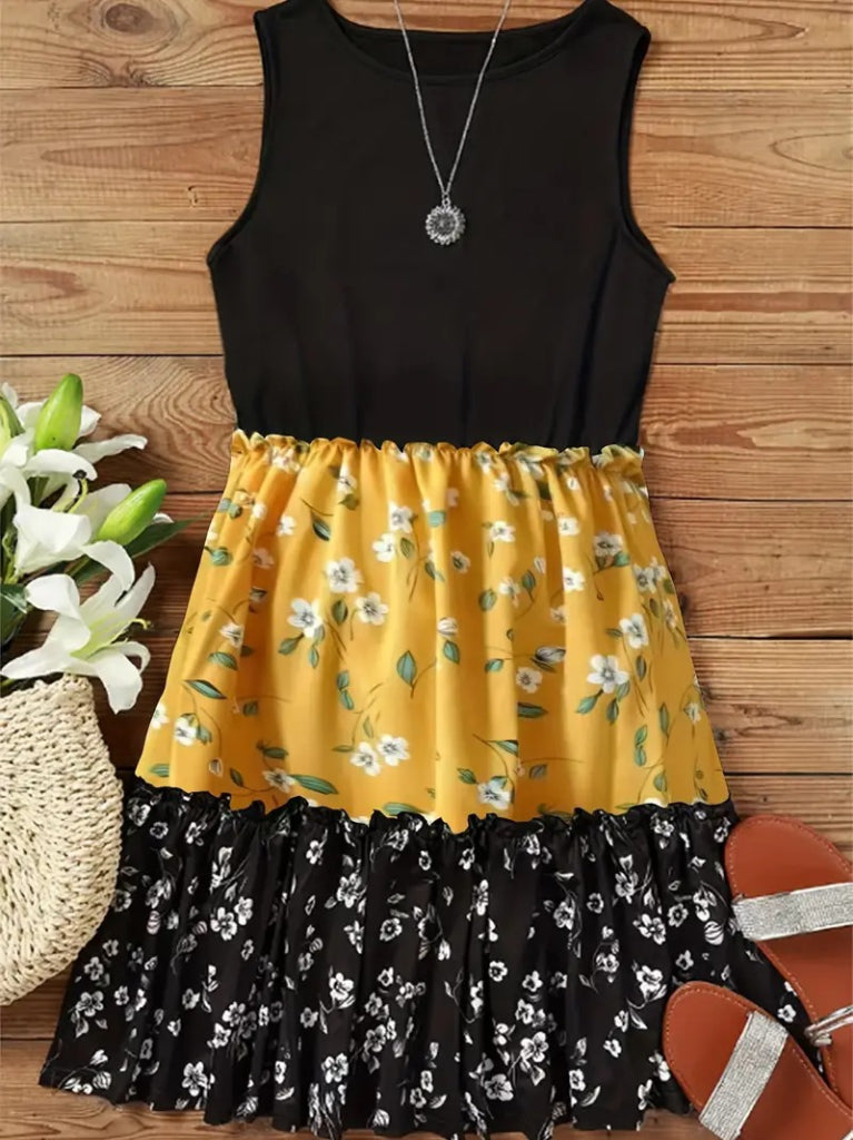 Kadın Askılı Yuvarlak Yaka çiçek Baskılı Salaş Süprem Elbise
