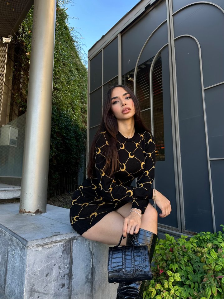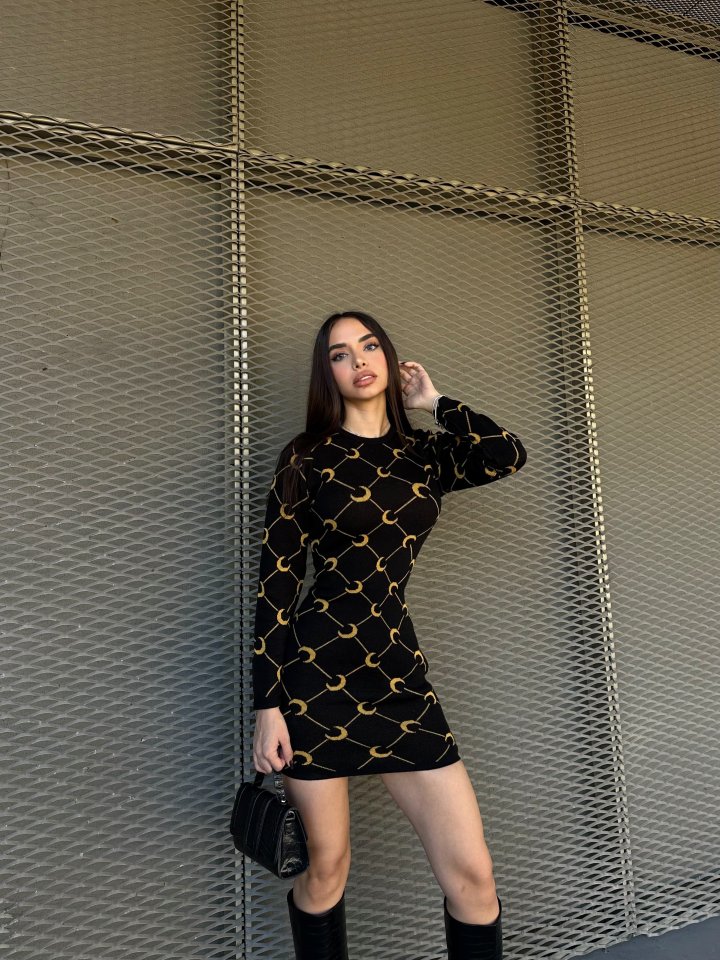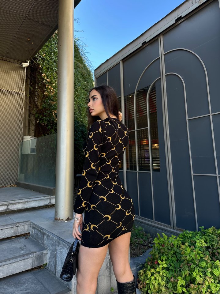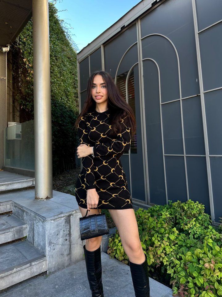 Kadın Bisiklet Yaka Uzun Kol Triko Mini Boy Elbise