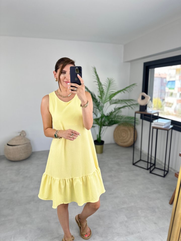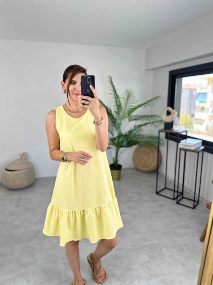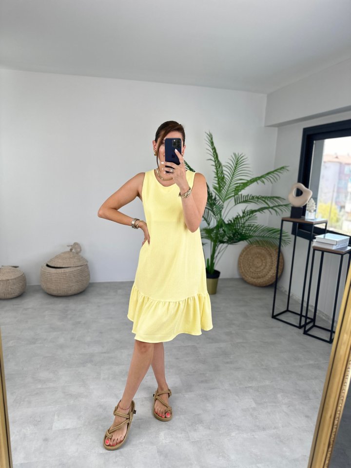 Kadın Bürümcük Kumaş Eteği Fırfır Detaylı Sıfır Kol Elbise