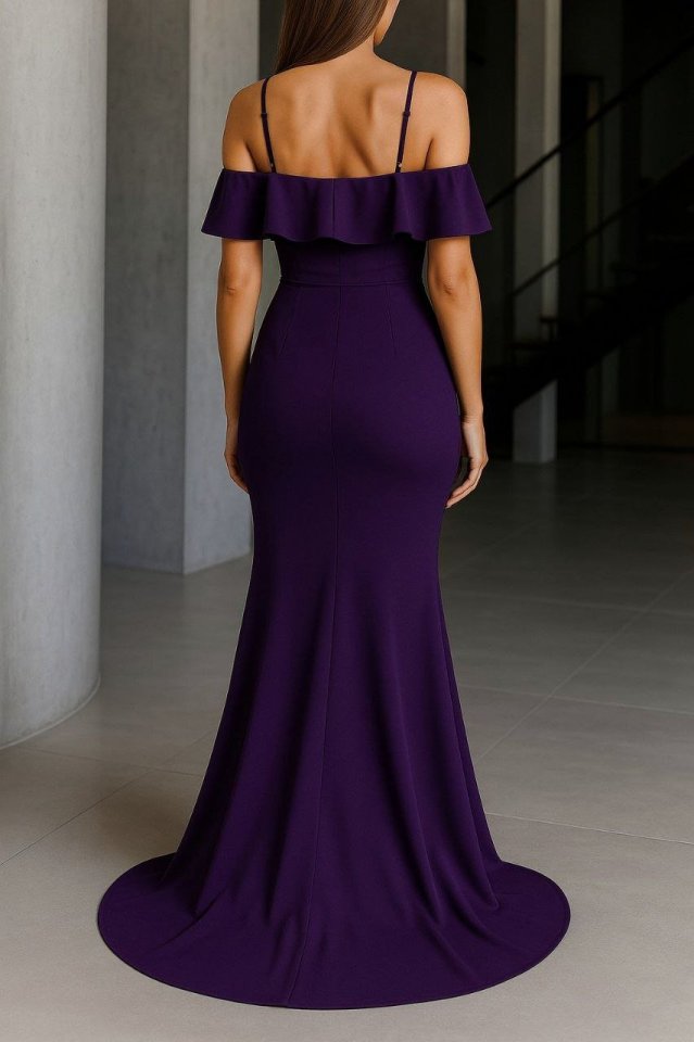 Kadın Dalgıç Krep Yırtmaç Detaylı Askılı Maxi Boy Elbise