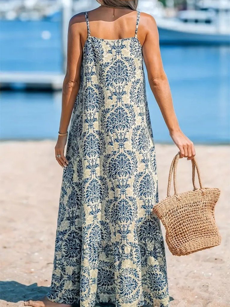 Kadın Ip Askılı Desenli Fırfırlı Süprem Elbise