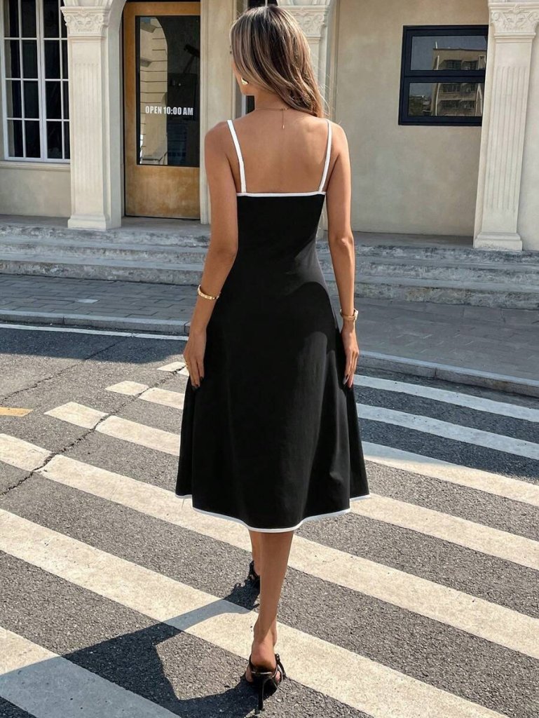 Kadın Ip Askılı Geniş V Yakalı Midi Janjan Krep Elbise