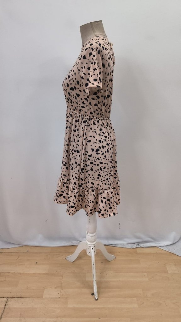 Kadın Kısa Kollu Bisiklet Yaka Desenli Süprem Elbise