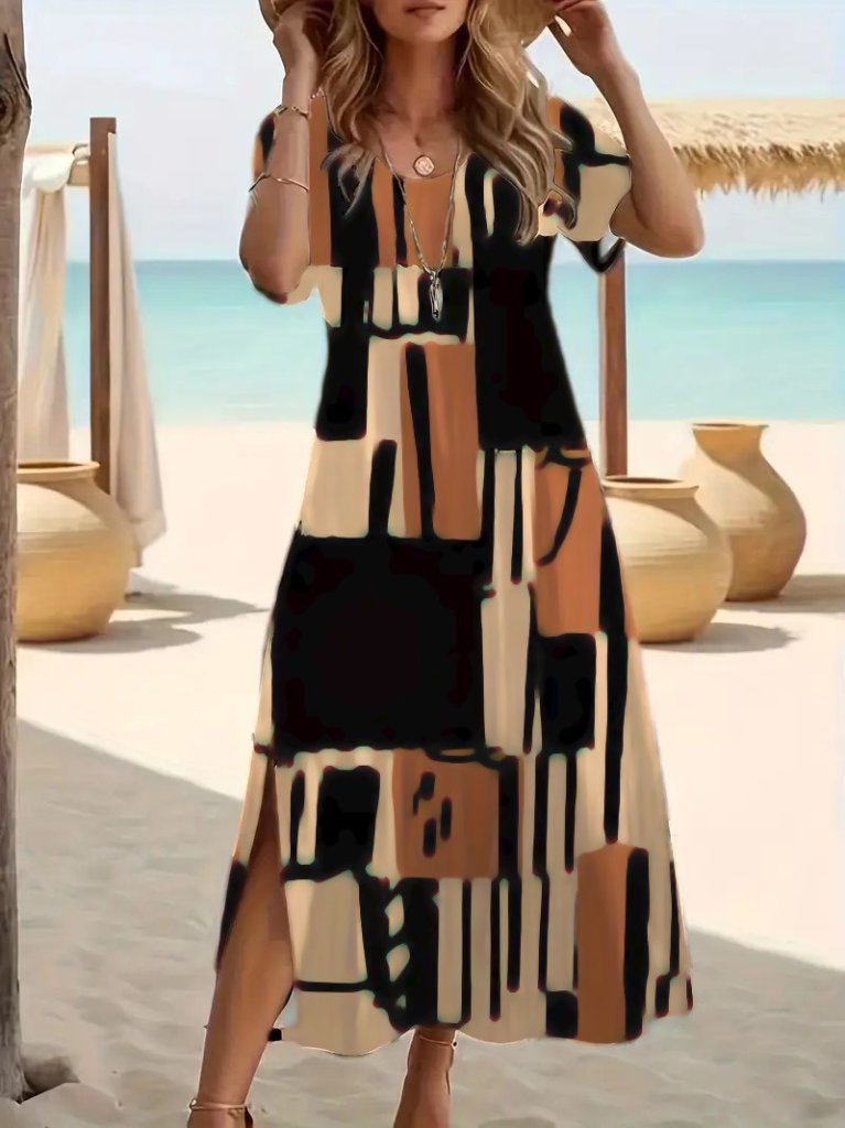 Kadın Kısa Kollu Bisiklet Yaka Süprem Elbise