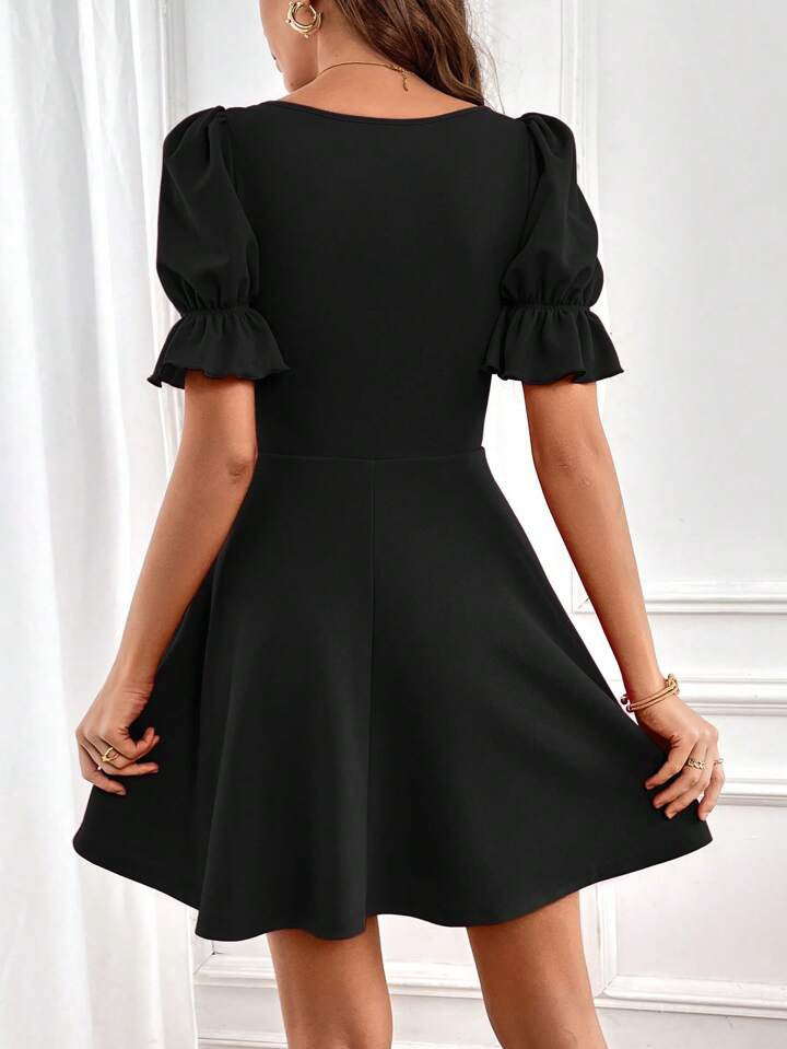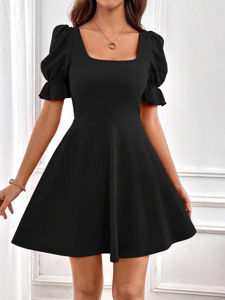 Kadın Kısa Kollu Kare Yakalı Kiloş Ithal Krep Elbise
