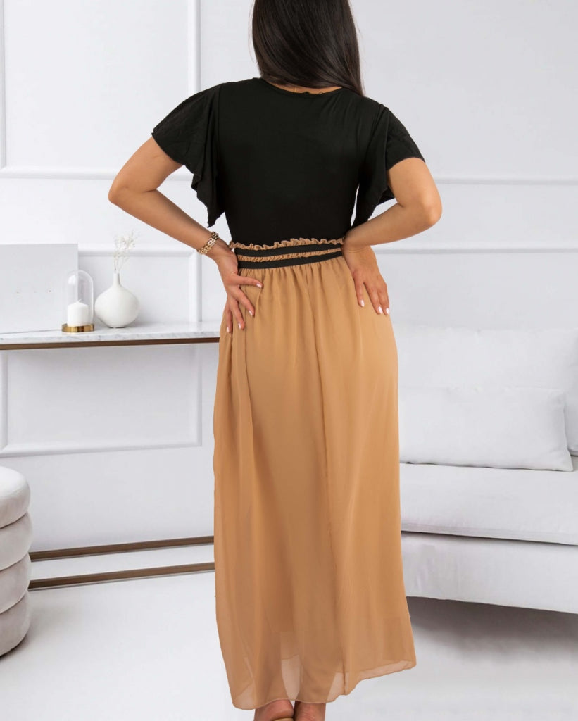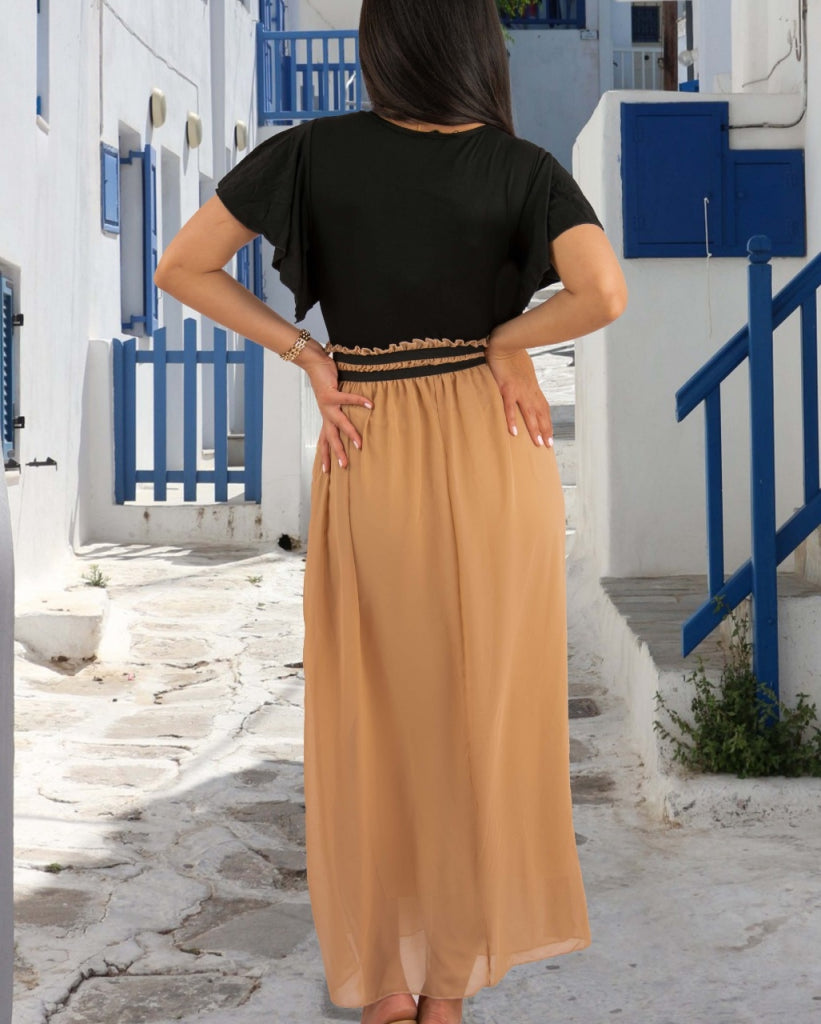 Kadın Kısa Kollu üst Viskon Alt Astarlı şifon Beli Lastikli Elbise