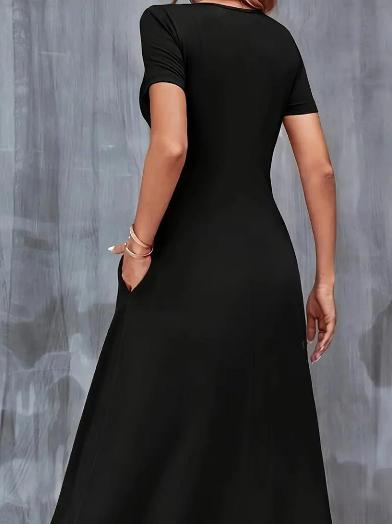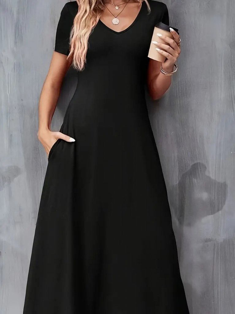 Kadın Kısa Kollu V Yaka Viskon Elbise
