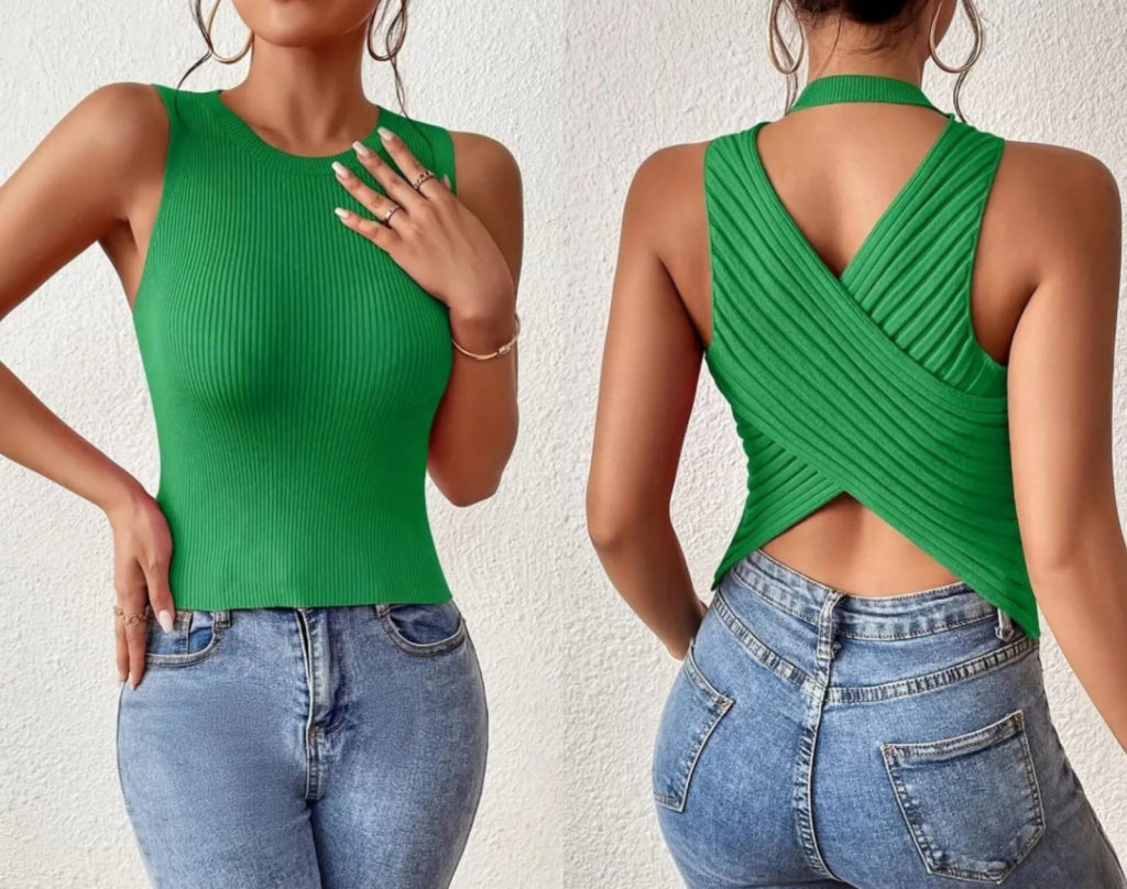 Kadın Sıfır Kol Sırt çapraz Detay Triko Bluz