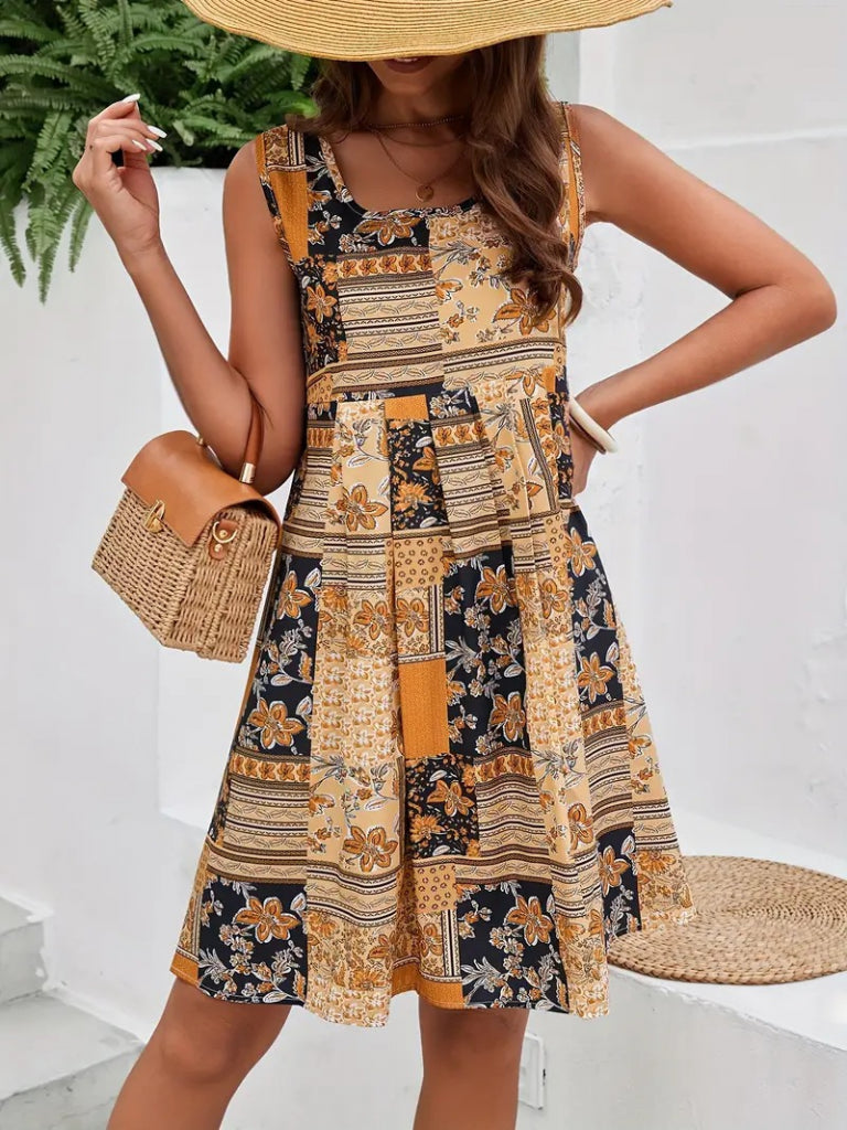 Kadın Sıfır Kol Yuvarlak Yaka çiçek Desenli Süprem Elbise