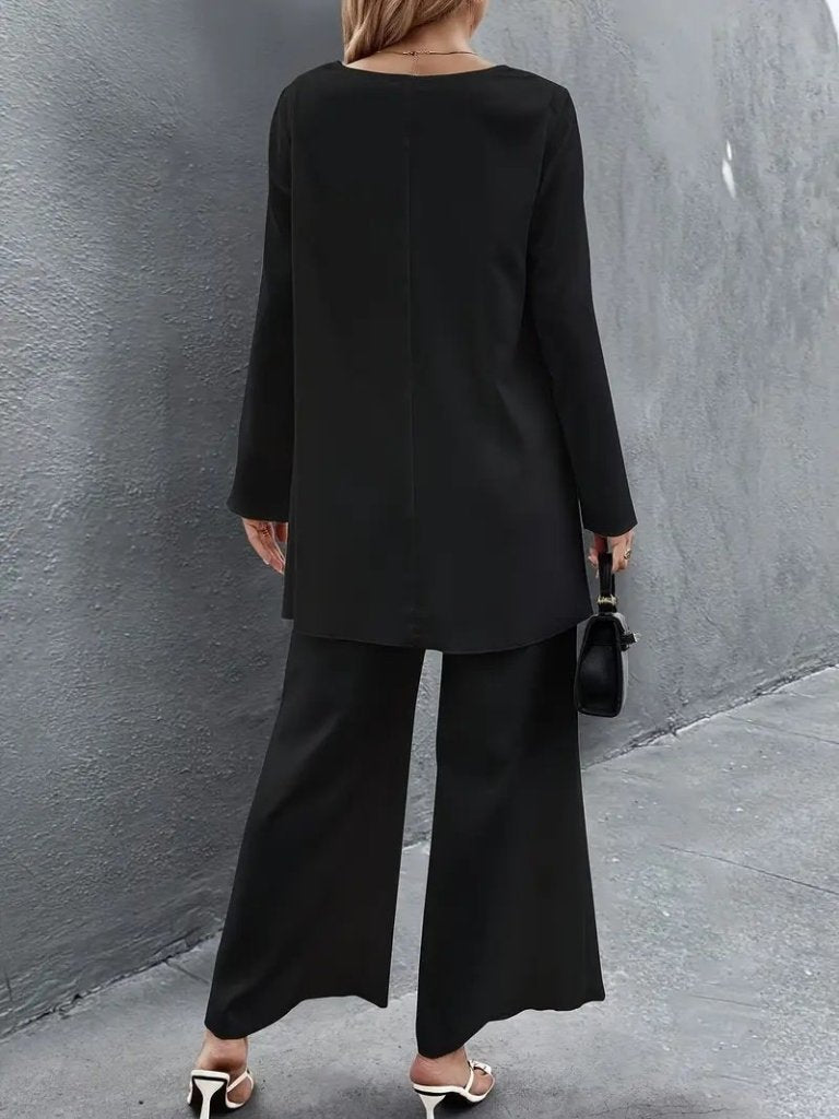 Kadın Uzun Kollu Asimetrik Detaylı Salaş Sandy Bluz Ve Pantolon Ikili Takım