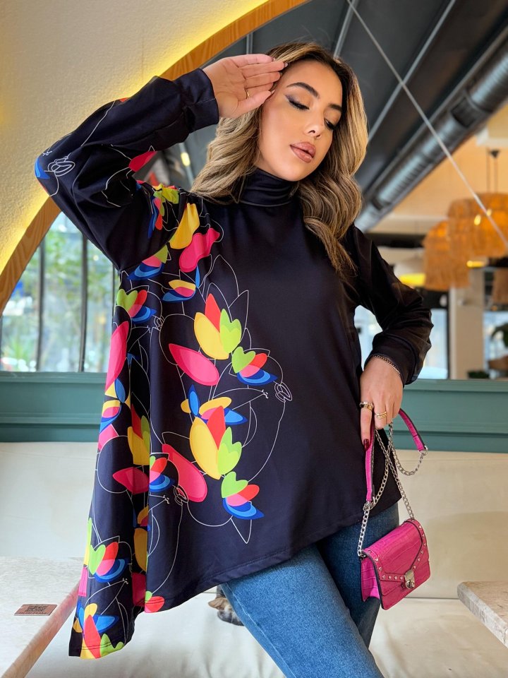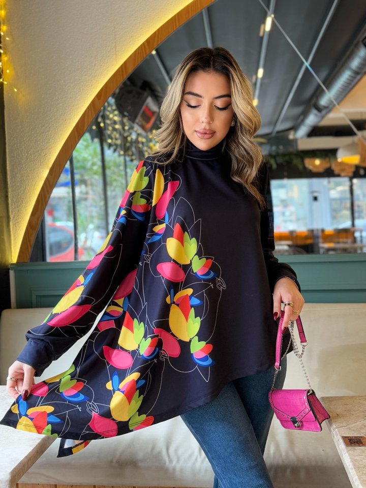 Kadın Uzun Kollu Balıkçı Yaka Asimetrik Kesim Dalgıç Kumaş Bluz