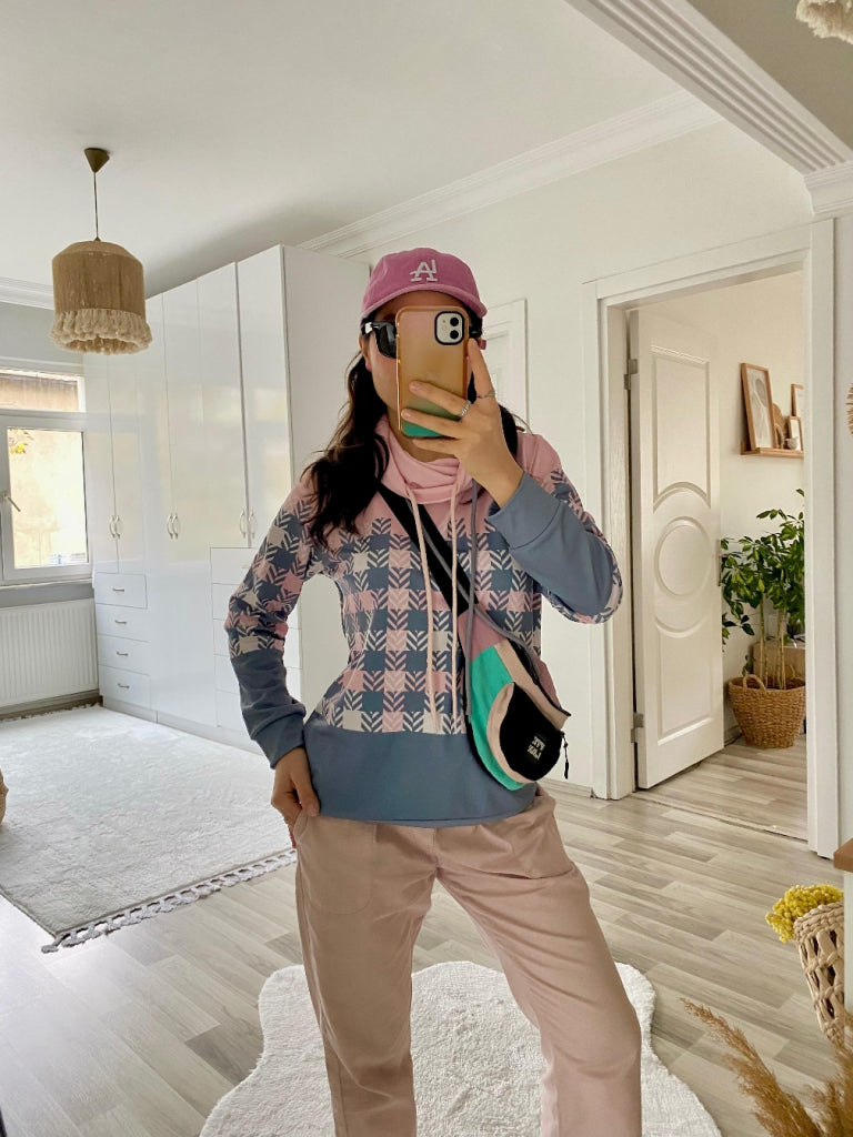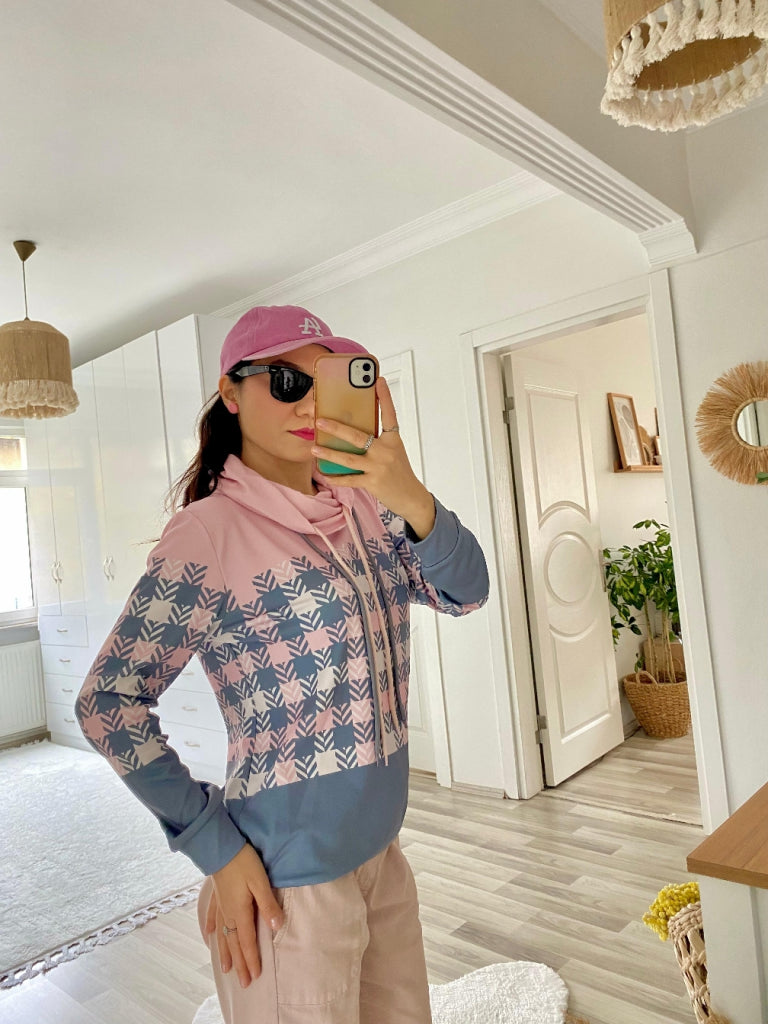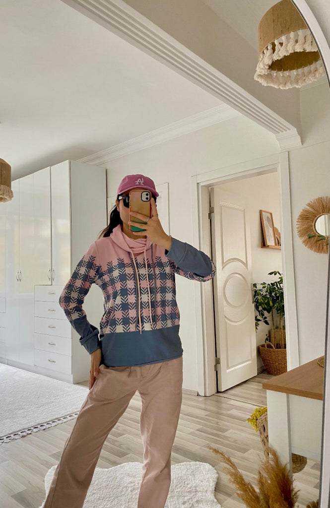 Kadın Uzun Kollu Balıkçı Yaka Bağcıklı Desenli şardonlu Dalgıç Bluz