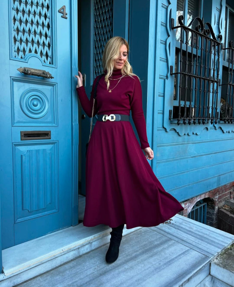 Kadın Uzun Kollu Balıkçı Yaka Uzun Akrilik Elbise