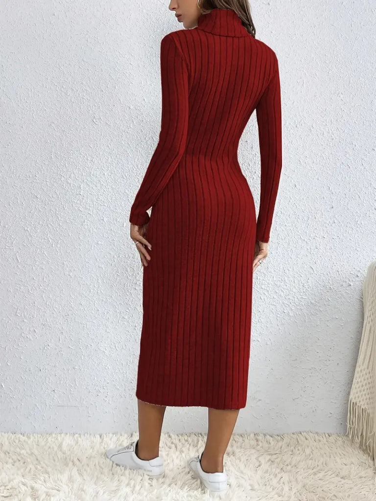 Kadın Uzun Kollu Balıkçı Yaka Yırtmaçlı Düğmeli şardonlu Kaşkorse Elbise(kemersiz)