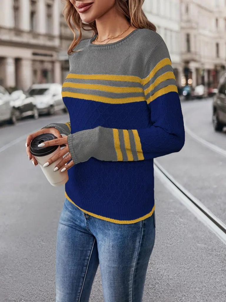 Kadın Uzun Kollu Bisiklet Yaka çok Renkli Triko Bluz