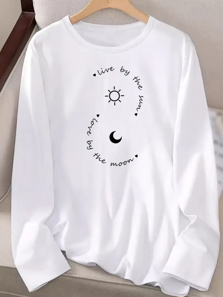 Kadın Uzun Kollu Bisiklet Yaka Desenli Viskon Bluz