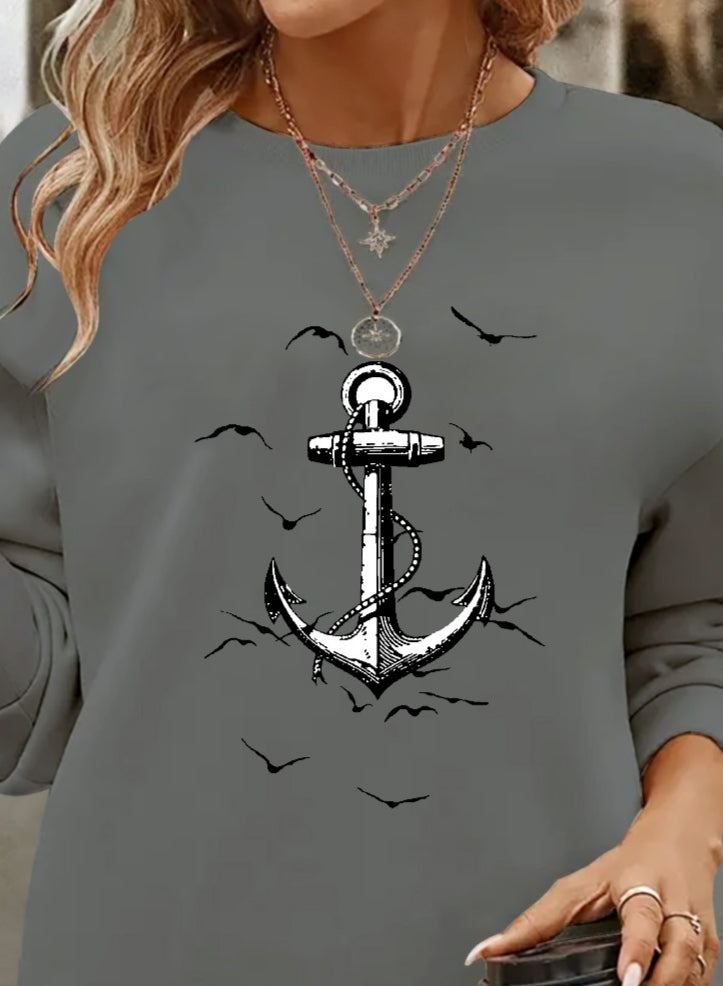 Kadın Uzun Kollu Bisiklet Yaka Desenli Viskon Iki Iplik Bluz