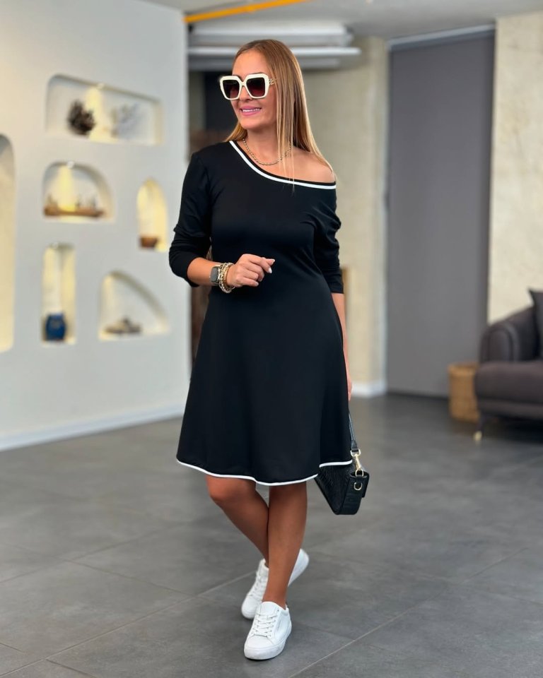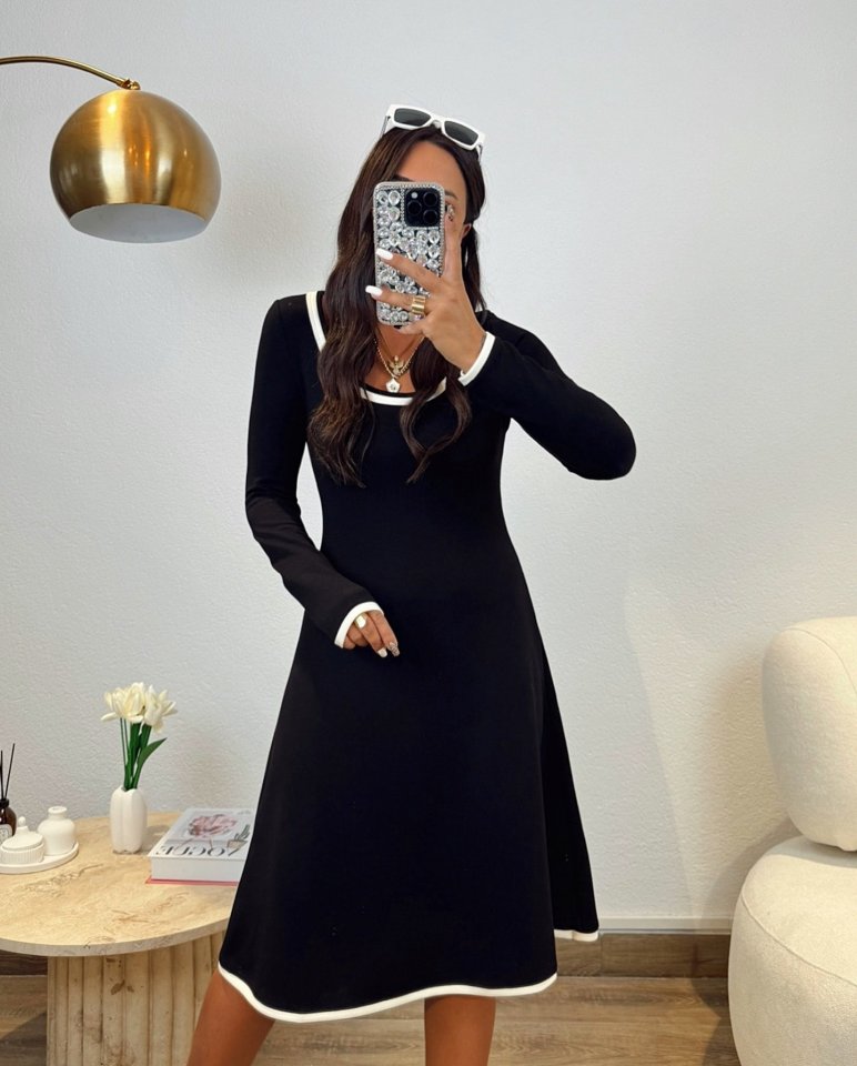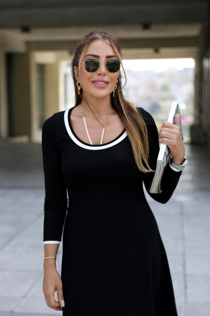 Kadın Uzun Kollu Derin Yuvarlak Yakalı Kısa Viskon Iki Iplik Elbise